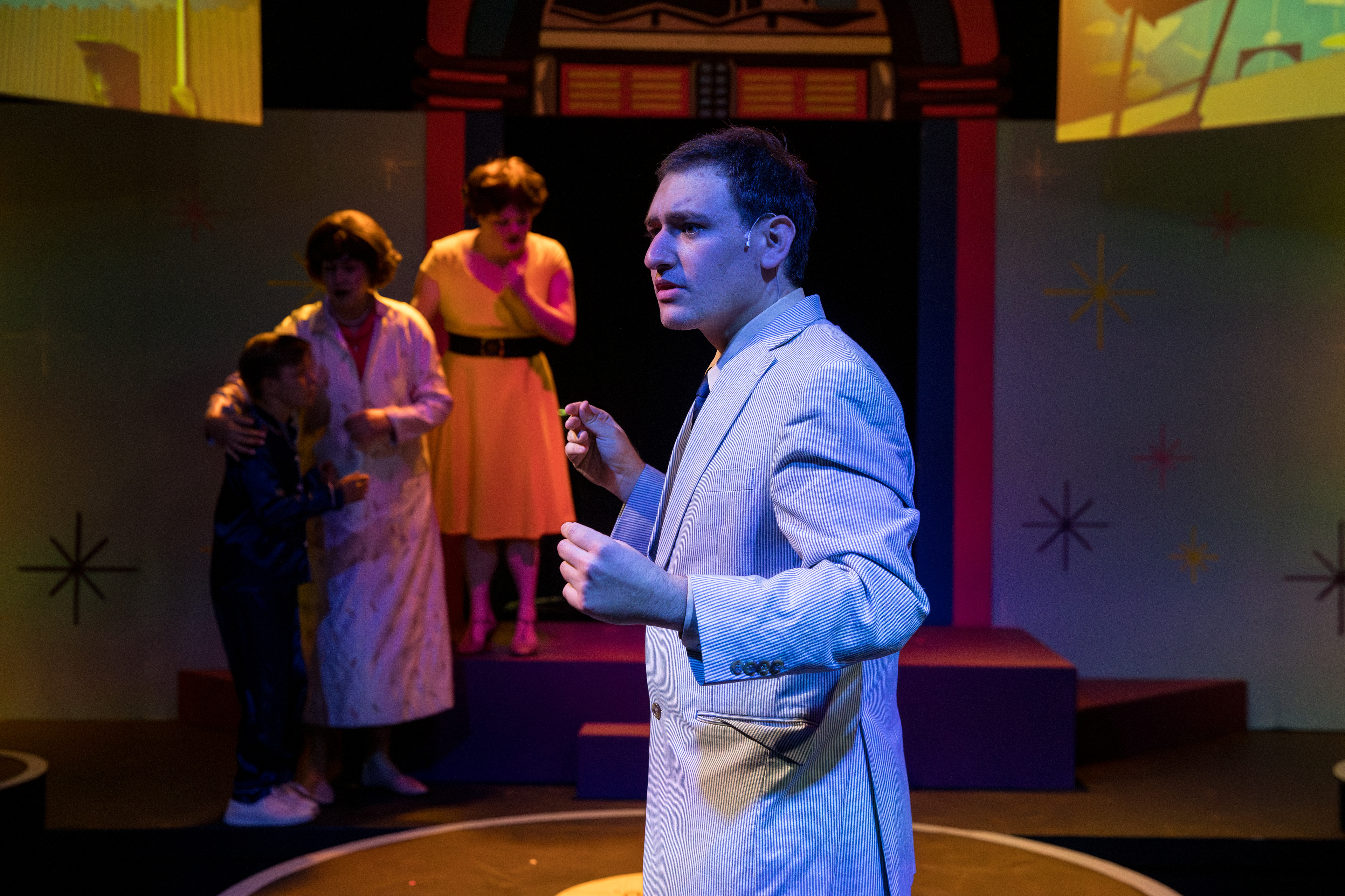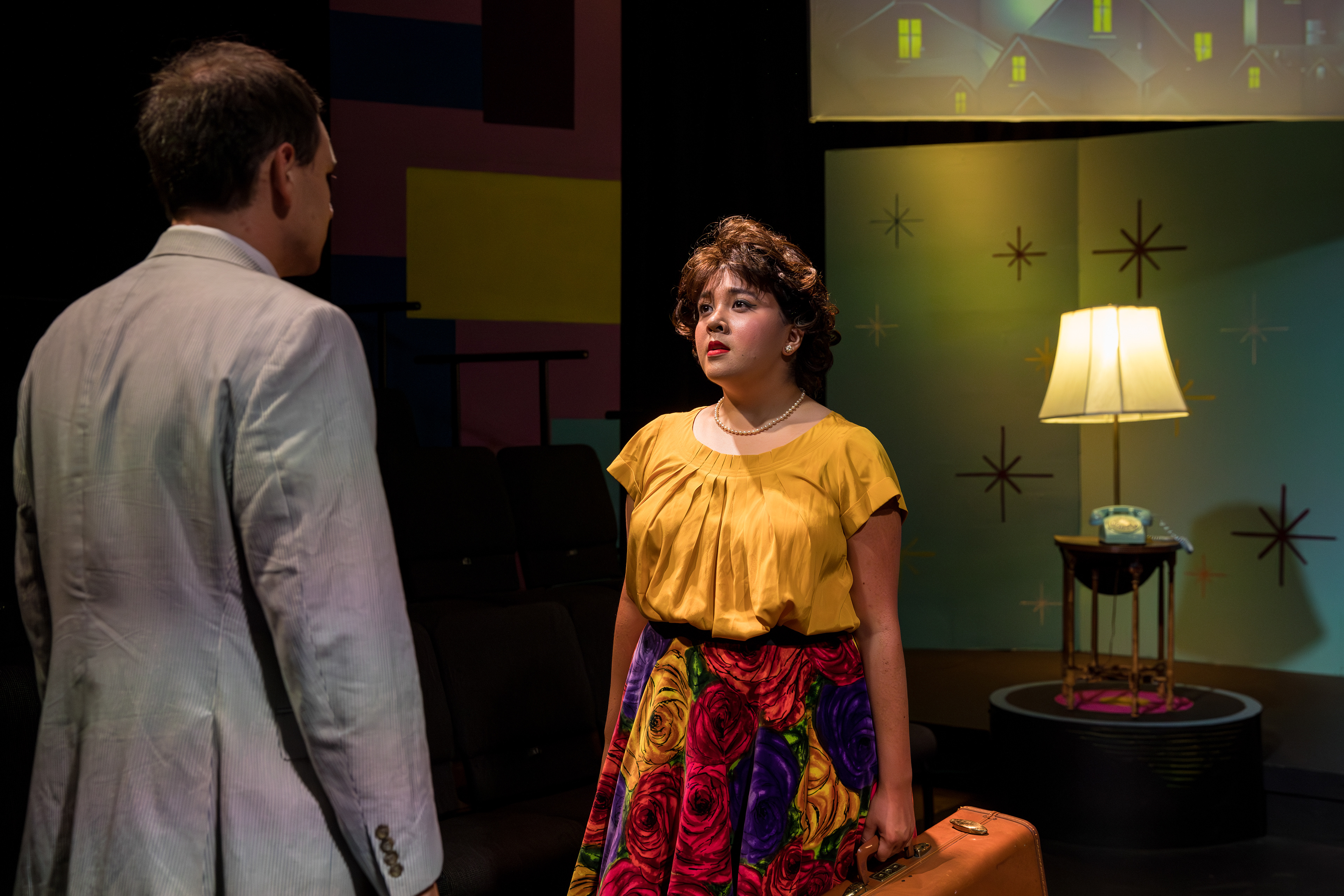 No Square Theater. Directed by Karen Rymar, Stage Managed by Chloe Deutschman, Set Design by Chris Caputo, Costume Design by Brigitte Harper, Sound Design by Conner Altwein, Projection Design by James Tran, Lighting Design by Mac McDermott